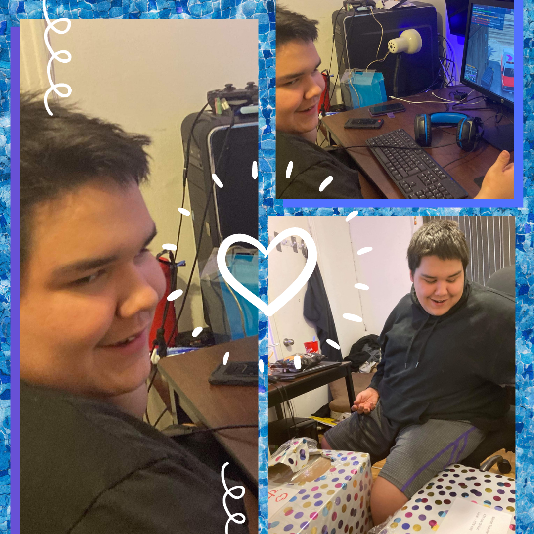 Nous sommes extrêmement reconnaissants à La Maison Kangourou d’avoir donné un petit moment de joie à notre fils qui vient de subir un gros traumatisme le jour de la Saint-Valentin. Depuis il souffre d’anxiété et de stress post traumatique et n’est plus le même. Mais grâce à Josée et son équipe de La Maison Kangourou qui lui ont offert un ordinateur de jeu, il a pu retrouver son sourire. Jouer à des jeux lui permet de s’évader et d’oublier pour un moment ses malheurs.